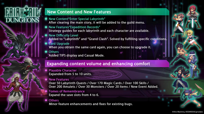 تستعد لعبة FAIRY TAIL: DUNGEONS، المبنية على سلسلة المانجا والأنمي الشهيرة، للصدور على Nintendo Switch يوم الأربعاء 7 يناير 2025. ويصل بالتزامن تحديث مجاني ضخم لمحتوى نسخة Steam، مما يمنح اللاعبين تجربة أعمق وأكثر تنوعًا. بوصفي من المتابعين لهذه السلسلة، أرى أن هذا التحديث ينقل اللعبة إلى مستوى جديد من حيث المحتوى والتحديات.