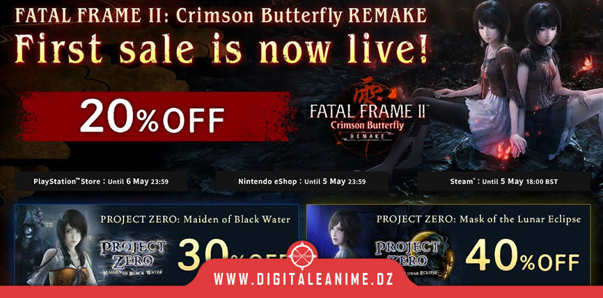 وبالإضافة إلى ذلك، تشمل التخفيضات أيضًا ألعاب السلسلة الأخرى مثل PROJECT ZERO: Maiden of Black Water و PROJECT ZERO: Mask of the Lunar Eclipse، لكن خصومات هذه العناوين متوفرة فقط على Steam.